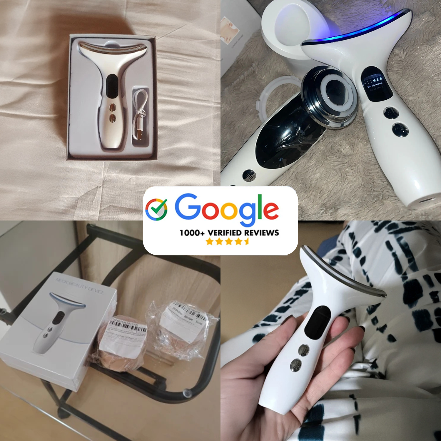 noticed smoother neck skin and reduced horizontal wrinkles within 3-4 weeks using the device 4-5 times per week.