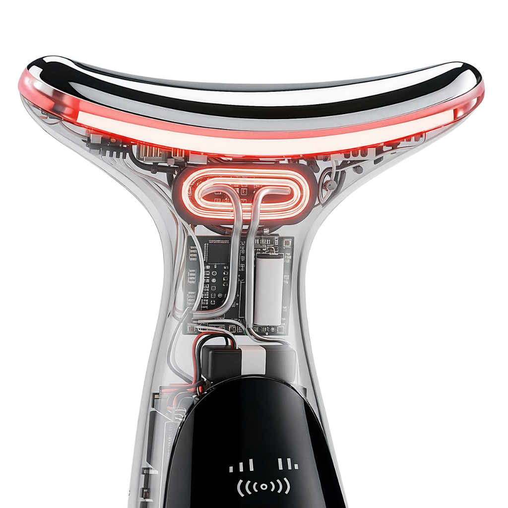 The 45°C ceramic heating element warms your skin to therapeutic temperature, dilating blood vessels and boosting circulation to problem areas. Combined with sonic vibration at 8,000 micro-pulses per minute, this creates a powerful drainage effect that eliminates trapped fluid and reduces fat deposits under your chin.
