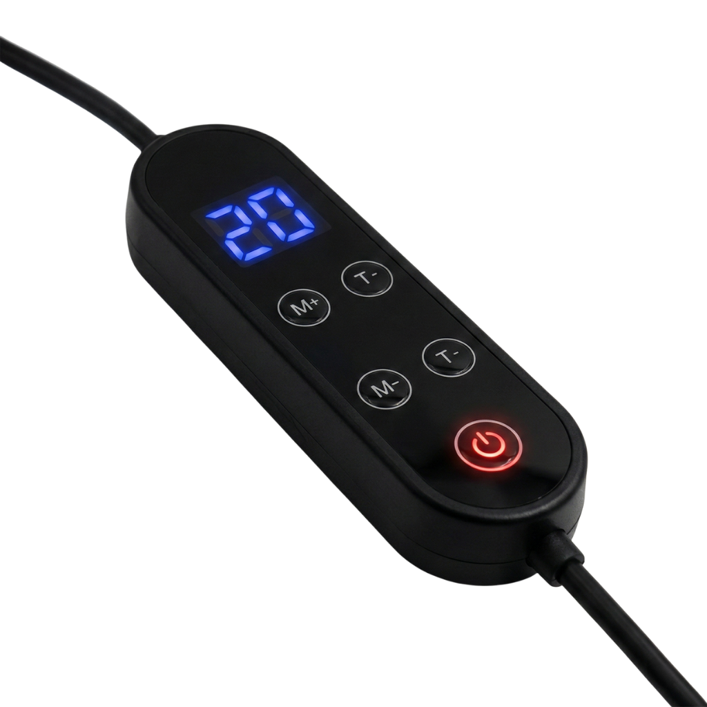 Open the box and begin your first treatment within minutes. Includes: red light therapy cap with 96 dual-wavelength LEDs built into the flexible fabric panel, USB Type-C cable (works with any power bank, laptop, or USB wall adapter), wired controller with digital display, user manual with treatment guide and mode recommendations, and gift box packaging.
