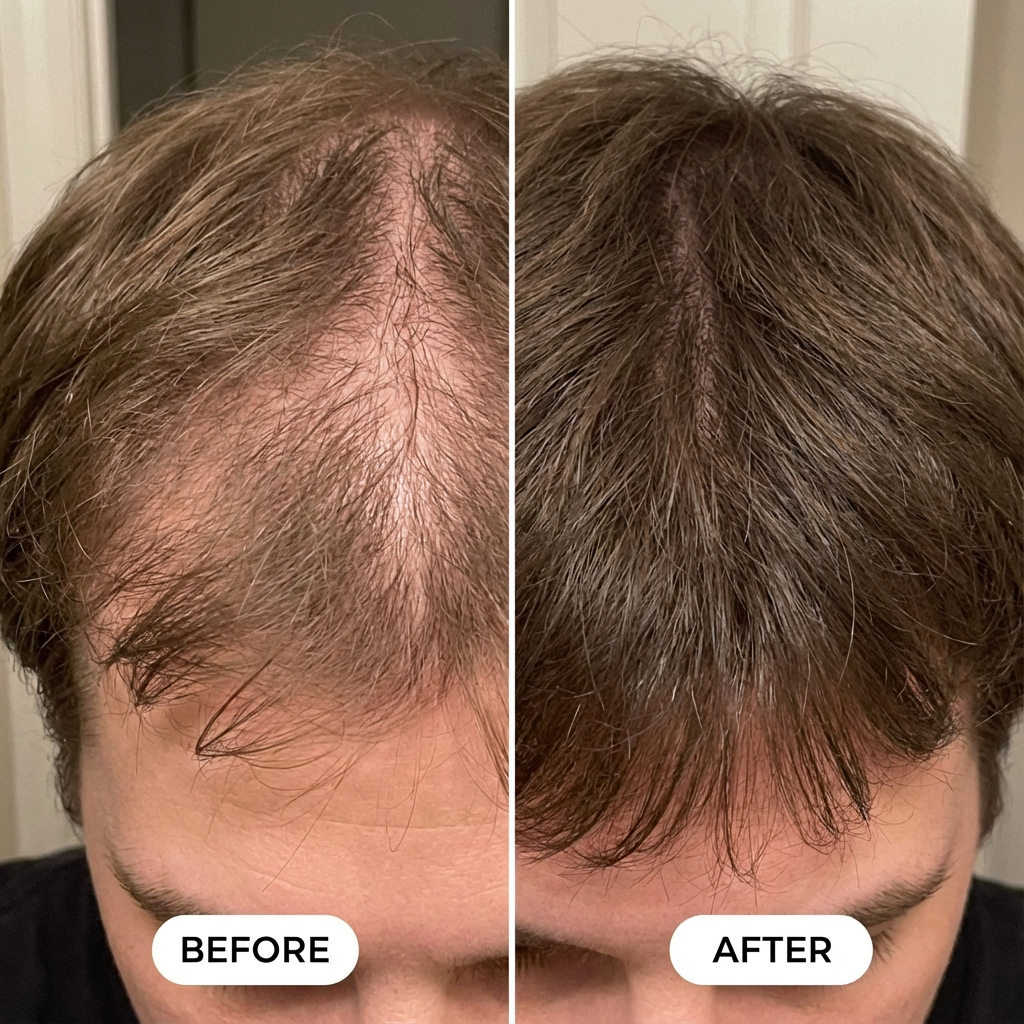 Most users notice reduced hair shedding within 6-8 weeks of daily use—less hair in the shower drain and on pillows. For visible new hair growth in thinning areas, expect results around 12-16 weeks of consistent treatment. Hair regrowth is gradual, and results compound over time with continued use.