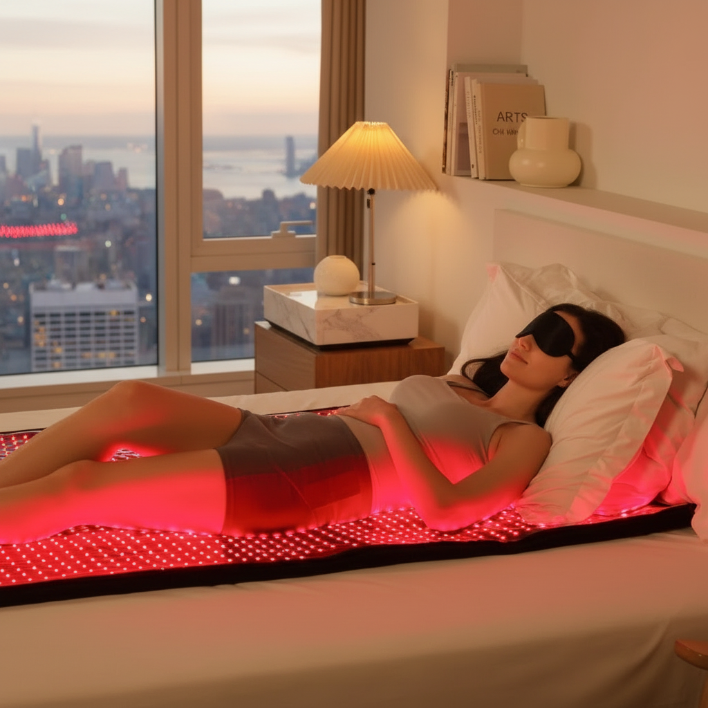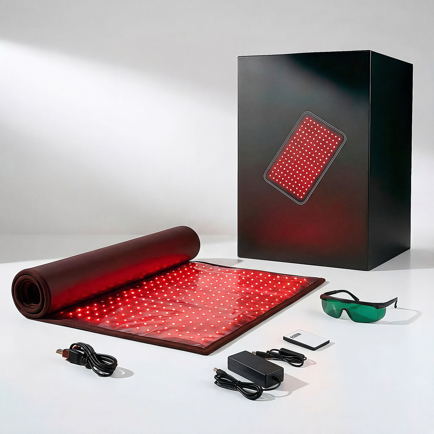 Open the box and start immediately—no additional purchases required. Includes: 67" x 24" full-body therapy mat, protective cover (sweat-proof, easy to clean), safety goggles, wireless remote control, power adapter, storage bag, and user manual.