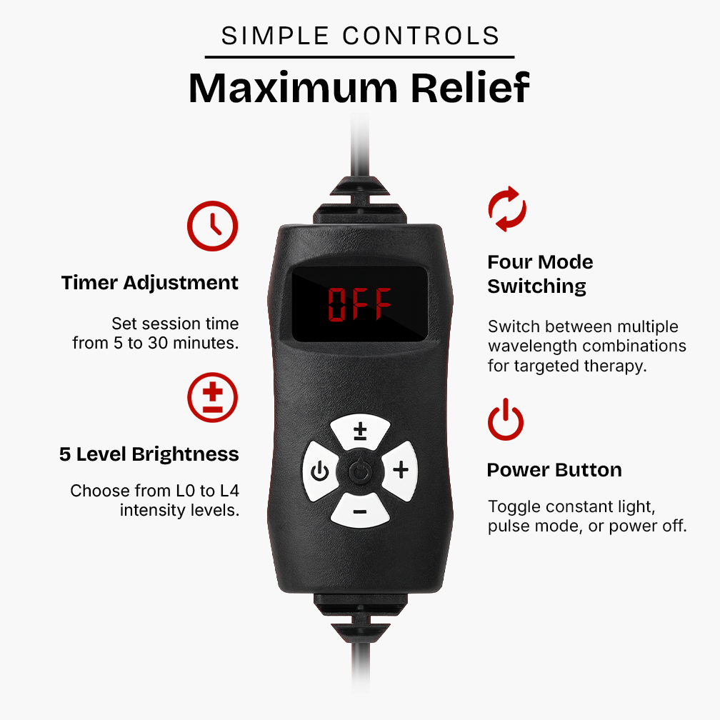 The device emits therapeutic light that penetrates tissue—the "warming" sensation you feel is increased blood flow and cellular activity, not external heat. However, when using the removable belt mode, there's a gentle warming element that provides soothing heat while delivering near-infrared therapy for enhanced pain relief.