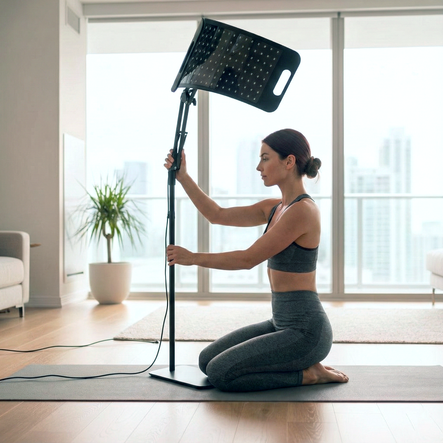 Heavy-duty aluminum stand with weighted base adjusts to any height and angle for stable, hands-free treatment. Position the panel flat for lying down, upright for sitting at your desk, or tilted for targeted treatment on your back, shoulders, or joints. The 360° rotating ball locks securely at any angle—no awkward holding, no slipping, no repositioning mid-session. Treat yourself while working, relaxing, or sleeping.